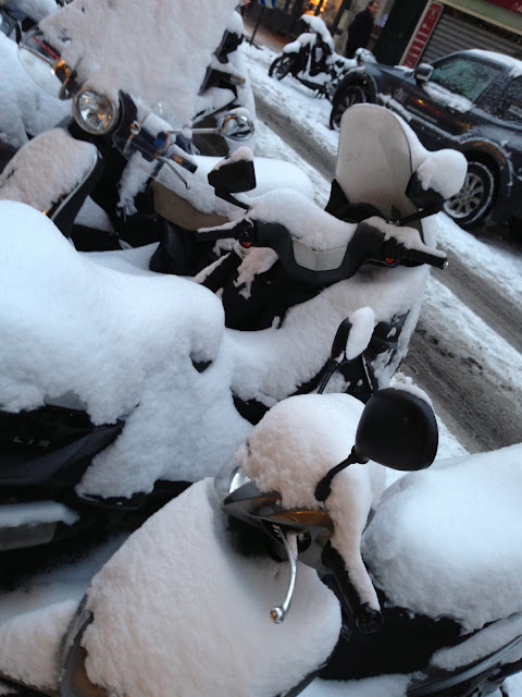 Snow and scooter mess in Paris